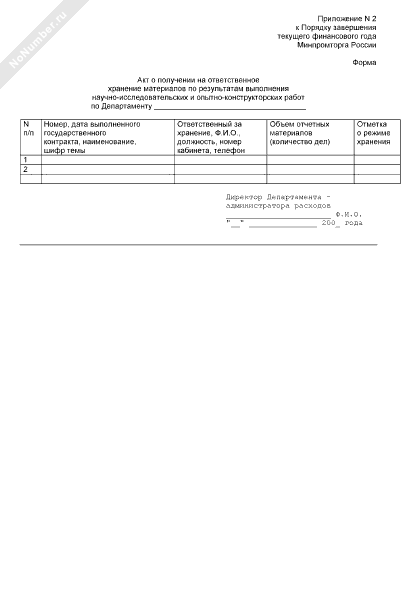 - 633Акт о получении на ответственное хранение материалов по результатам выполнения научно-исследовательских и опытно-конструкторских работ по Департаменту — администратору расходов