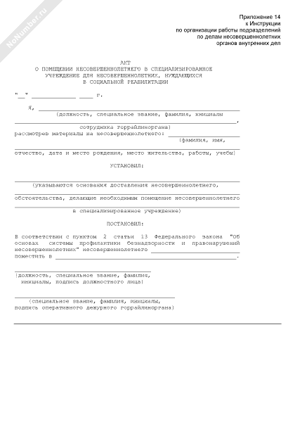 - 634Акт о помещении несовершеннолетнего в специализированное учреждение для несовершеннолетних, нуждающихся в социальной реабилитации