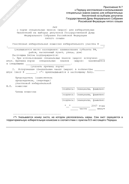 - 638Акт о порче специальных знаков (марок) для избирательных бюллетеней на выборах депутатов Государственной Думы Федерального Собрания Российской Федерации пятого созыва