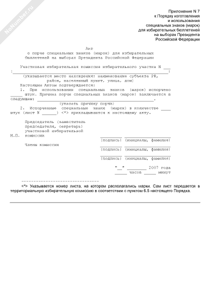 - 637Акт о порче специальных знаков (марок) для избирательных бюллетеней на выборах Президента Российской Федерации