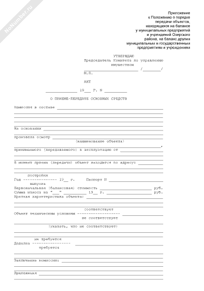 - 671Акт о приеме-передаче основных средств, находящихся на балансе у муниципальных предприятий и учреждений Озерского района Московской области