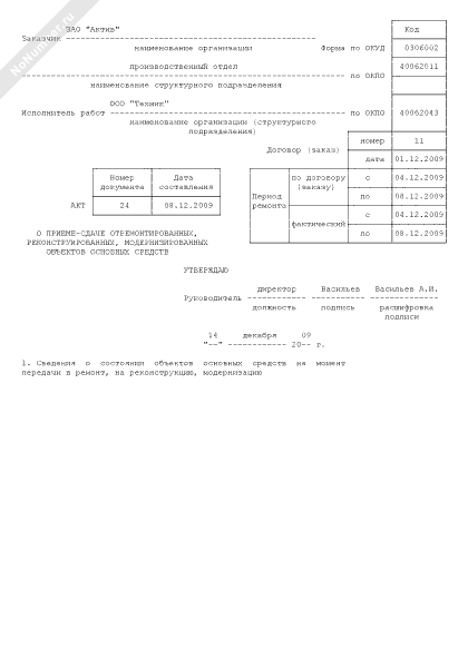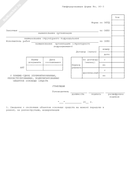 - 676Акт о приеме-сдаче отремонтированных, реконструированных, модернизированных объектов основных средств (унифицированная форма № ОС-3)