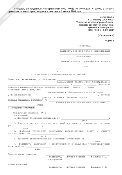 - 767Акт о результатах эксплуатационных испытаний средств железнодорожной связи (форма № 8)