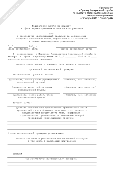 - 765Акт о результатах инспекционной проверки за медицинским освидетельствованием детей, передаваемых на воспитание в семью, международное усыновление