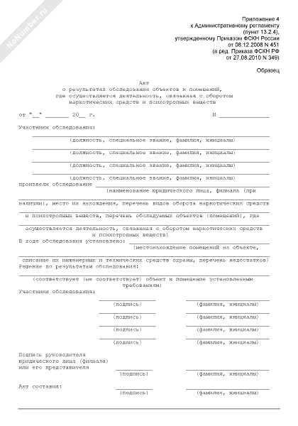- 779Акт о результатах обследования объектов и помещений, где осуществляется деятельность, связанная с оборотом наркотических средств и психотропных веществ