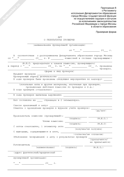 - 763Акт о результатах проверки исполнения законодательства Российской Федерации и города Москвы в области образования