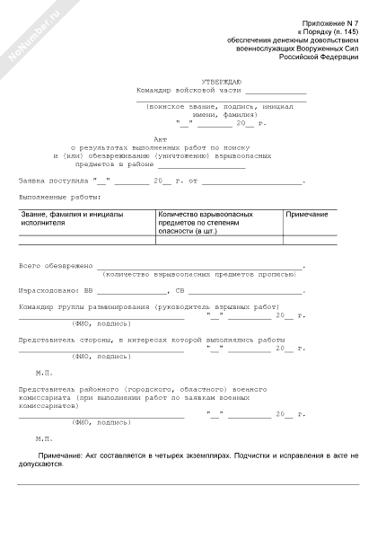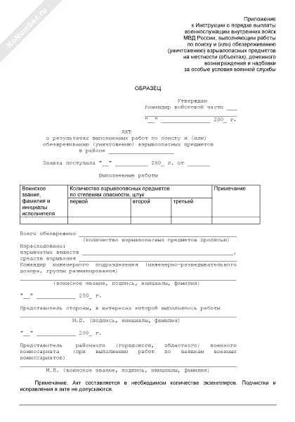 - 769Акт о результатах выполненных работ по поиску и (или) обезвреживанию (уничтожению) взрывоопасных предметов