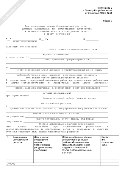 - 62Акт возвращения водных биологических ресурсов, добытых (выловленных) при осуществлении рыболовства в научно-исследовательских и контрольных целях, в среду их обитания (форма № 2)