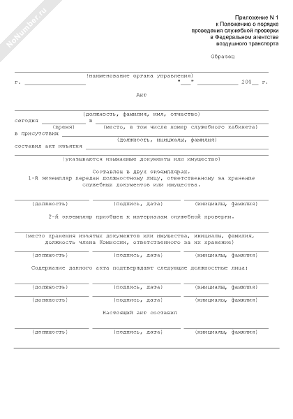 - 65Акт временного изъятия служебных документов на период проведения служебной проверки в Федеральном агентстве воздушного транспорта