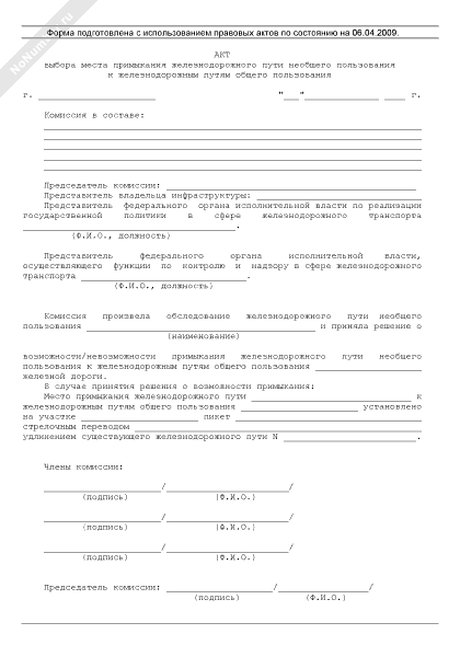 - 71Акт выбора места примыкания железнодорожного пути необщего пользования к железнодорожным путям общего пользования