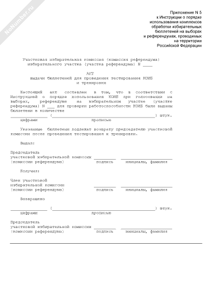 - 76Акт выдачи бюллетеней для проведения тестирования с использованием комплексов обработки избирательных бюллетеней и тренировки на выборах и референдумах, проводимых на территории Российской Федерации