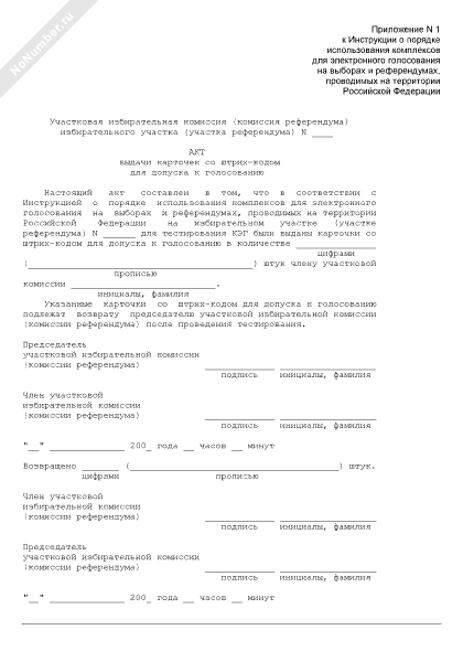 - 79Акт выдачи карточек со штрих-кодом для допуска к голосованию на выборах и референдумах, проводимых на территории Российской Федерации