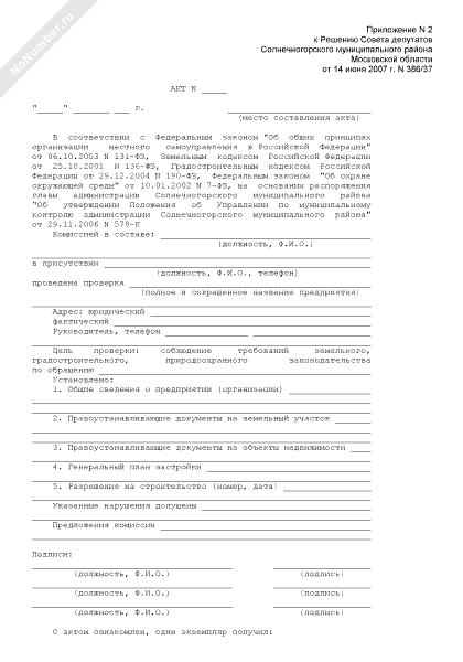 - 812Акт о соблюдении требований земельного, градостроительного, природоохранного законодательства на территории Солнечногорского муниципального района Московской области