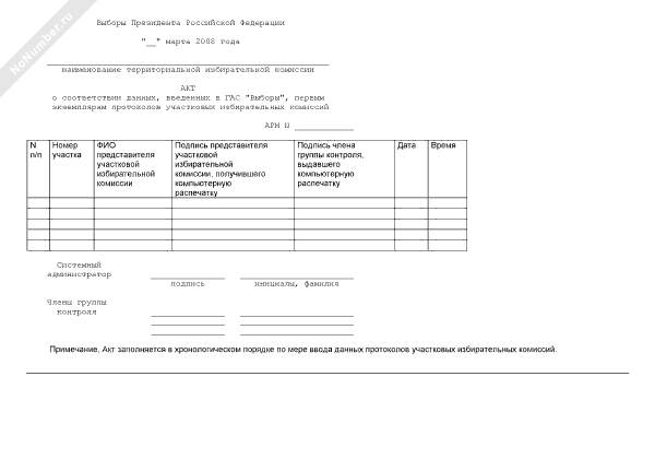 - 827Акт о соответствии данных, введенных в государственную автоматизированную систему «Выборы», первым экземплярам протоколов участковых избирательных комиссий при проведении выборов Президента Российской Федерации