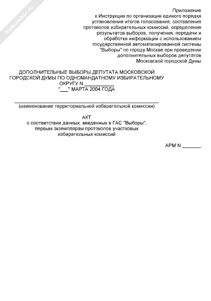 - 826Акт о соответствии данных, введенных в государственную автоматизированную систему «Выборы», первым экземплярам протоколов участковых избирательных комиссий при проведении выборов депутатов Государственной Думы Федерального Собрания пятого созыва