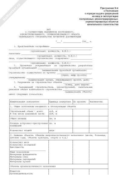 - 824Акт о соответствии выполненных работ, построенного, реконструированного, отремонтированного объекта капитального строительства в Московской области требованиям технических регламентов (норм и правил) и проекту