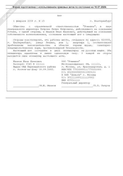 - 830Акт о соответствии рабочего места требованиям законодательства