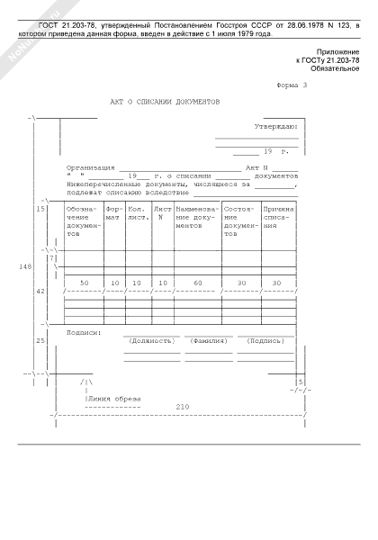 - 835Акт о списании пришедшего в негодность или утерянного подлинника документа на строительство предприятий, зданий, сооружений (в том числе подлинников документов на изделия)