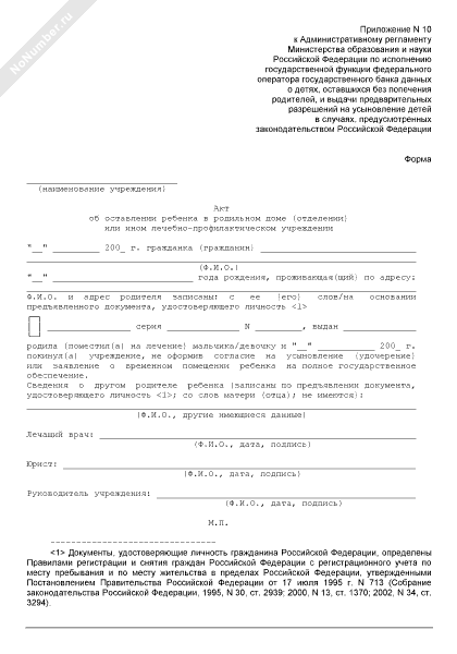 - 942Акт об оставлении ребенка в родильном доме (отделении) или ином лечебно-профилактическом учреждении