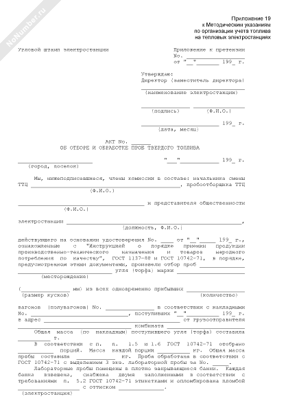 - 944Акт об отборе и обработке проб твердого топлива на тепловых электростанциях (приложение к претензии о возмещении стоимости недостающего твердого топлива)