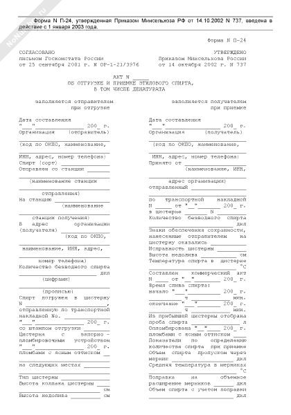 - 950Акт об отгрузке и приемке этилового спирта, в том числе денатурированного (форма № П-24)