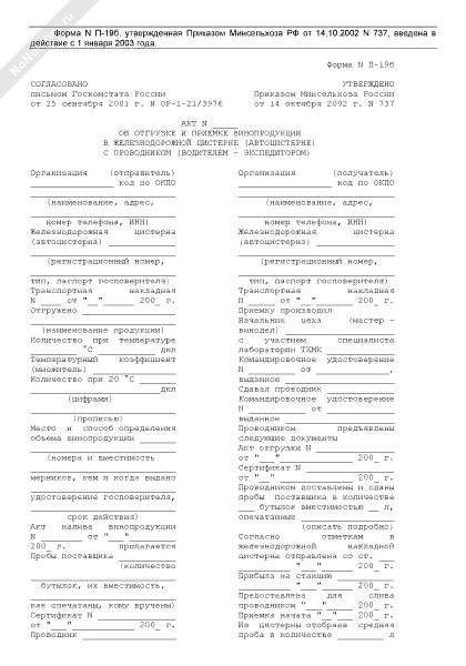 - 947Акт об отгрузке и приемке винопродукции в железнодорожной цистерне (автоцистерне) с проводником (водителем-экспедитором) (форма № П-19б)