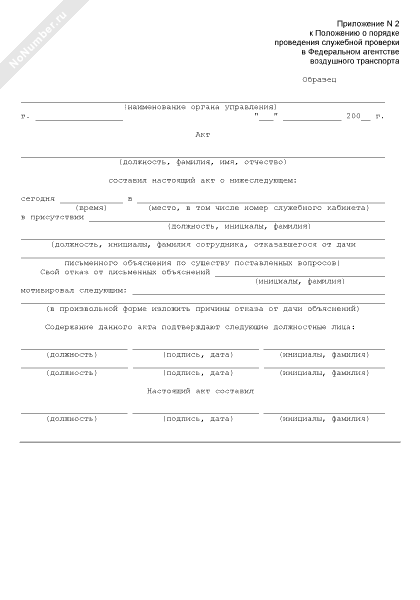 - 957Акт об отказе гражданского служащего от дачи письменного объяснения по существу поставленных вопросов во время проведения служебной проверки в Федеральном агентстве воздушного транспорта
