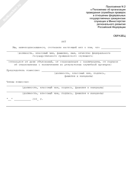 - 952Акт об отказе гражданского служащего Министерства регионального развития Российской Федерации, в отношении которого проводится служебная проверка, от дачи письменного объяснения