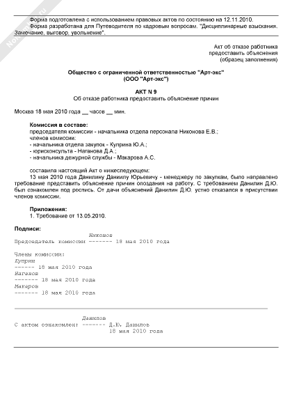 - 1003Акт об отказе работника предоставить объяснения