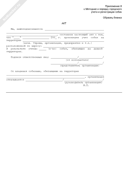 - 1018Акт об отказе юридического лица, на территории которого обитают собаки, от регистрации животных
