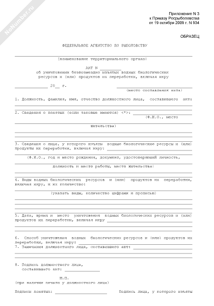 - 1071Акт об уничтожении безвозмездно изъятых водных биологических ресурсов и (или) продуктов их переработки, включая икру