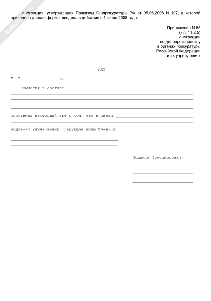 - 1072Акт об уничтожении гербовых бланков в органах прокуратуры Российской Федерации