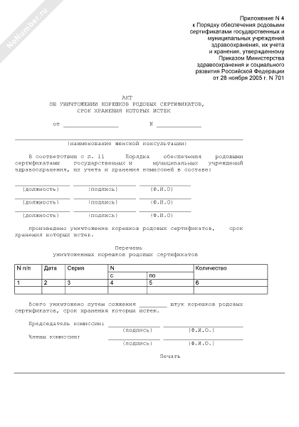 - 1064Акт об уничтожении испорченных родовых сертификатов