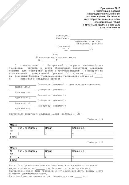 - 1068Акт об уничтожении неиспользованных и поврежденных акцизных марок для маркировки табака и табачных изделий