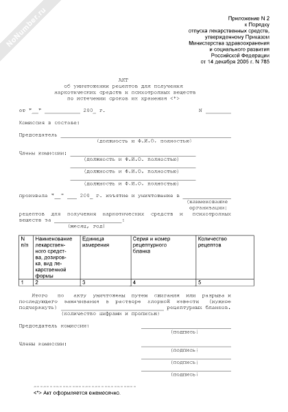 - 1065Акт об уничтожении рецептов для получения наркотических средств и психотропных веществ по истечении сроков их хранения