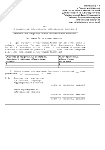 - 1061Акт об уничтожении выбракованных избирательных бюллетеней для голосования на выборах депутатов Государственной Думы Федерального Собрания Российской Федерации пятого созыва