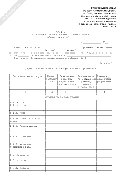 - 1125Акт обследования механического и электрического оборудования лифта