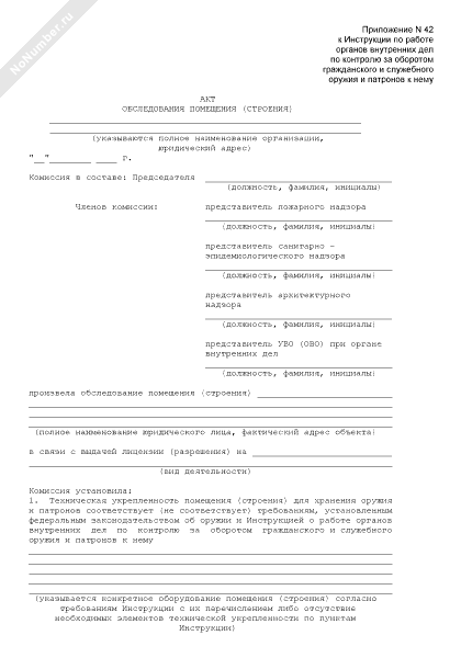 - 1126Акт обследования помещения (строения) юридического лица — объекта хранения оружия и патронов