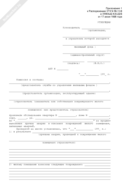 - 1121Акт обследования поврежденного застрахованного жилого помещения на предмет установления причин аварии, приведшей к повреждениям, и описания нанесенных помещению повреждений