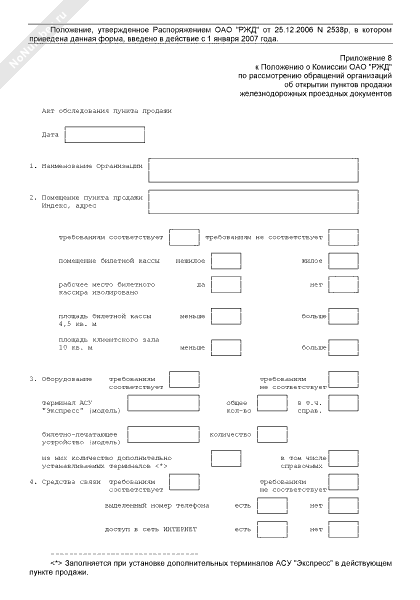 - 1132Акт обследования пункта продажи организации, заявляющей о наделении ее правом реализации железнодорожных проездных документов