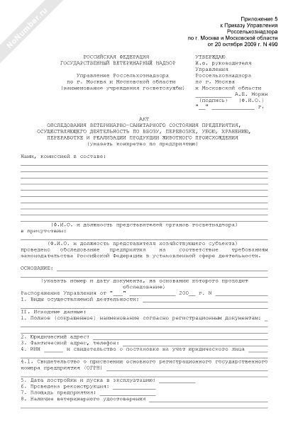 - 1137Акт обследования ветеринарно-санитарного состояния предприятия, осуществляющего деятельность по ввозу, перевозке, убою, хранению, переработке и реализации продукции животного происхождения