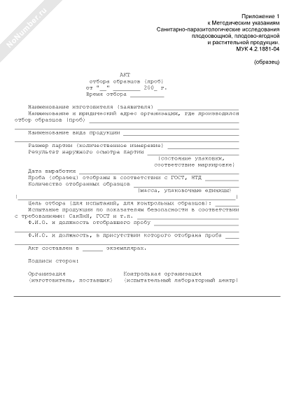 - 1304Акт отбора образцов (проб) для исследования плодоовощной, плодово-ягодной и растительной продукции