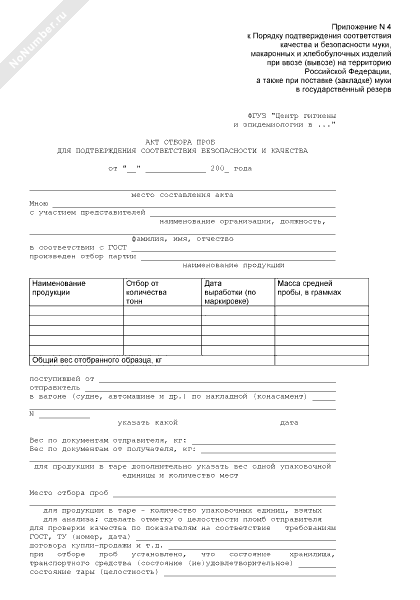 - 1315Акт отбора проб для подтверждения соответствия безопасности и качества МУКи, макаронных и хлебобулочных изделий при ввозе (вывозе) на территорию Российской Федерации, а также при поставке (закладке) МУКи в государственный резерв
