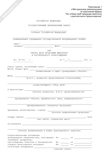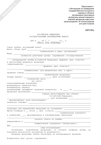 - 1319Акт отбора проб продукции животного происхождения при ветеринарно-санитарной экспертизе продукции, признанной некачественной и опасной в соответствии с действующей нормативно-технической документацией