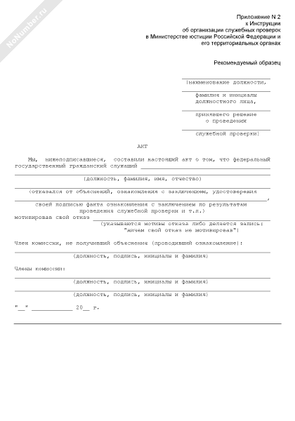 - 1325Акт отказа гражданского служащего Министерства юстиции Российской Федерации (его территориальных органов), в отношении которого (по письменному заявлению которого) проводится служебная проверка, от дачи письменного объяснения