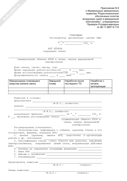 - 1324Акт отказа (нарушения связи) объекта радиотехнического обеспечения полетов воздушных судов и связи, канала авиационной электросвязи