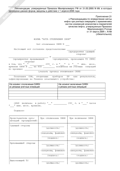 - 1327Акт отключения системы измерений количества и показателей качества нефти