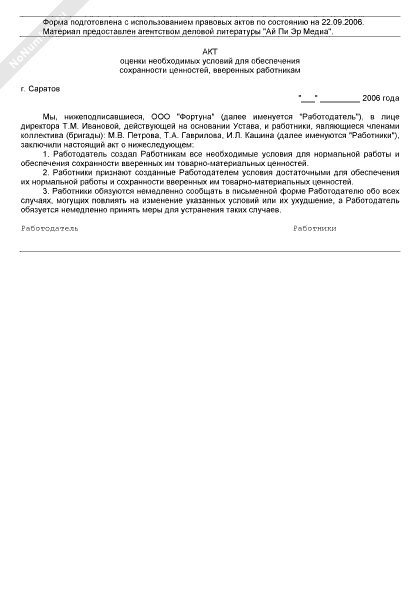 - 1336Акт оценки необходимых условий для обеспечения сохранности ценностей, вверенных работникам