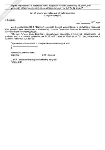 - 1329Акт отсутствия работника на рабочем месте (в случае прогула)
