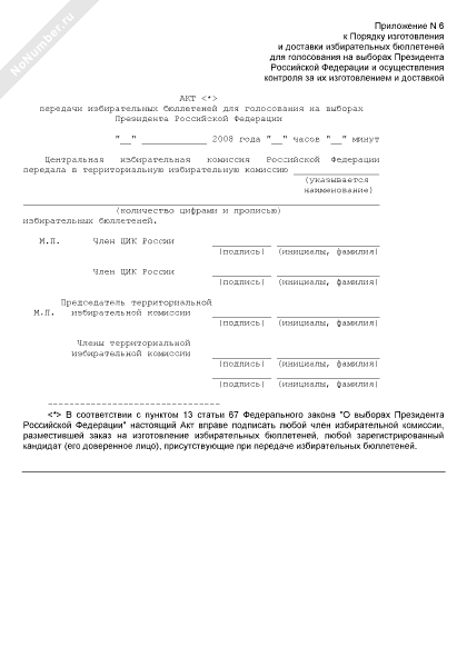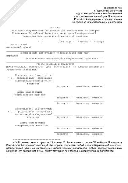 - 1376Акт передачи избирательных бюллетеней для голосования на выборах Президента Российской Федерации вышестоящей избирательной комиссией нижестоящей избирательной комиссии